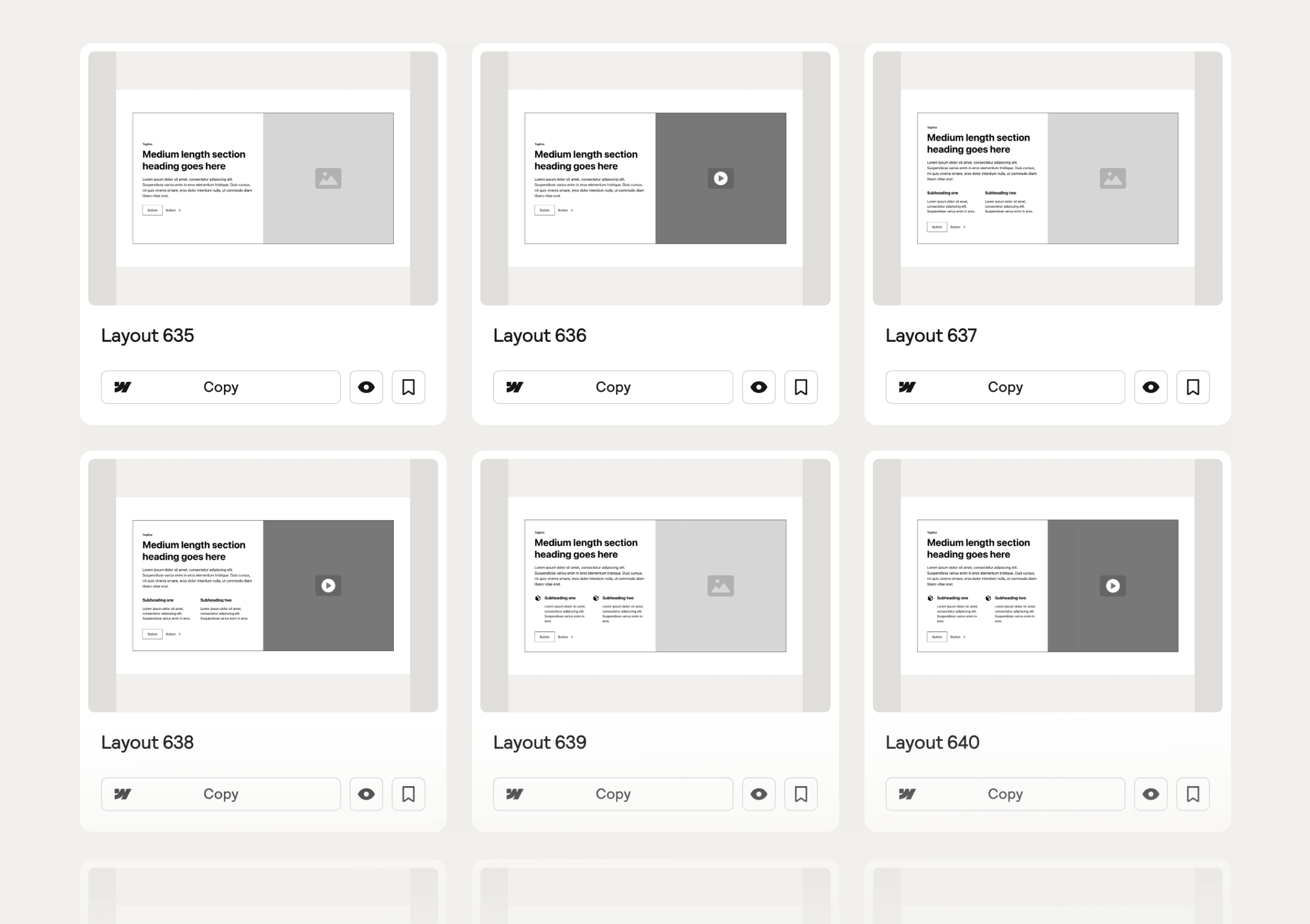 We've just released 75 new components to give you even more flexibility and creative options when designing your next site. This drop includes brand-new Testimonial Sections with videos, background images and cards, and Feature Sections with Cards with cards. Plus, we've squeezed in a few versatile space-filling layouts to round out your builds.